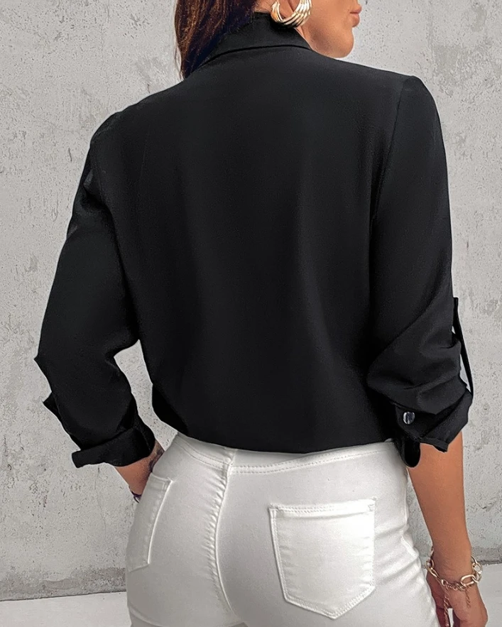 Elegant Commuting Women's Shirts Autumn Casual Slim Fit Curly Sleeve Button Glitter Splicing Fashion Trend Korean Women's Shirts