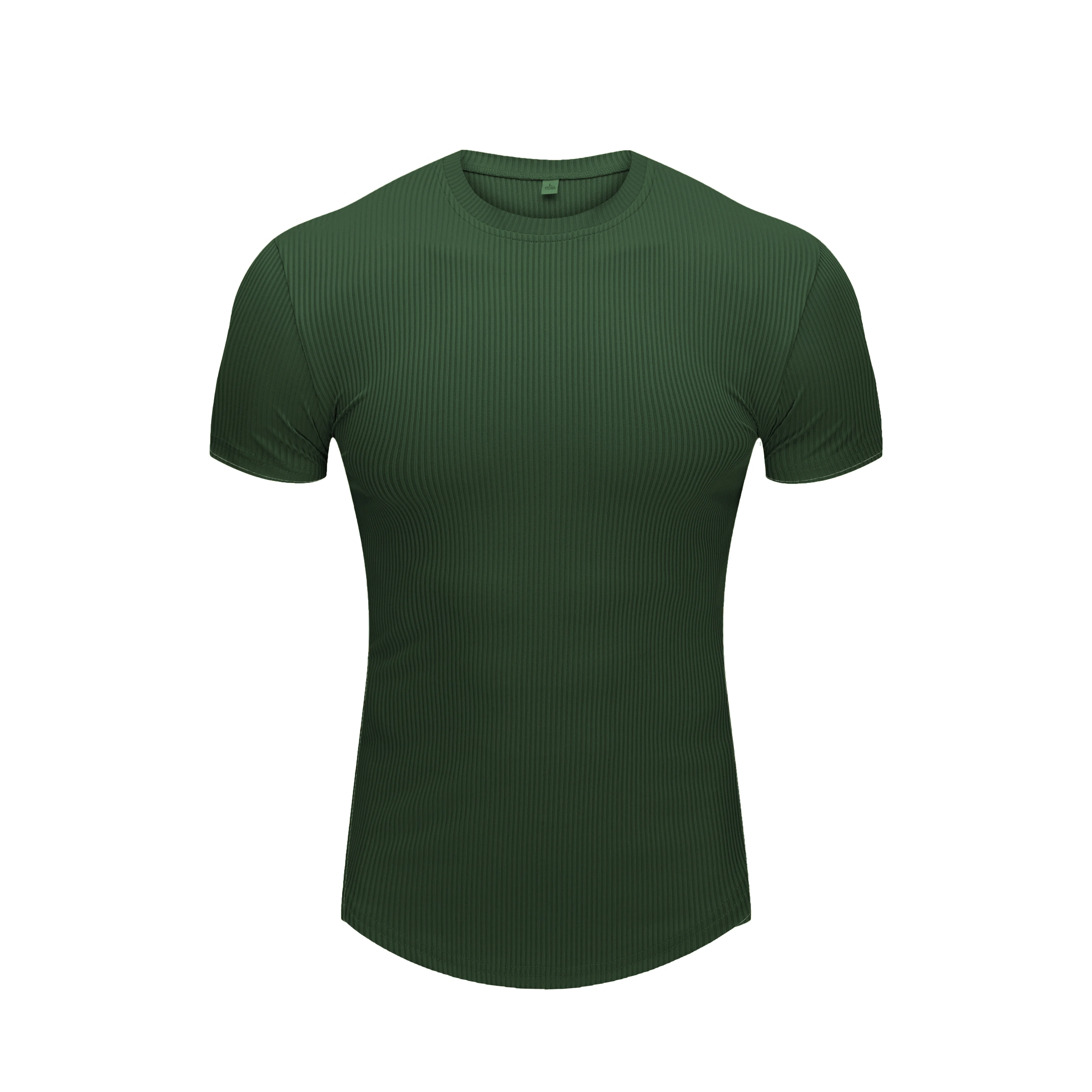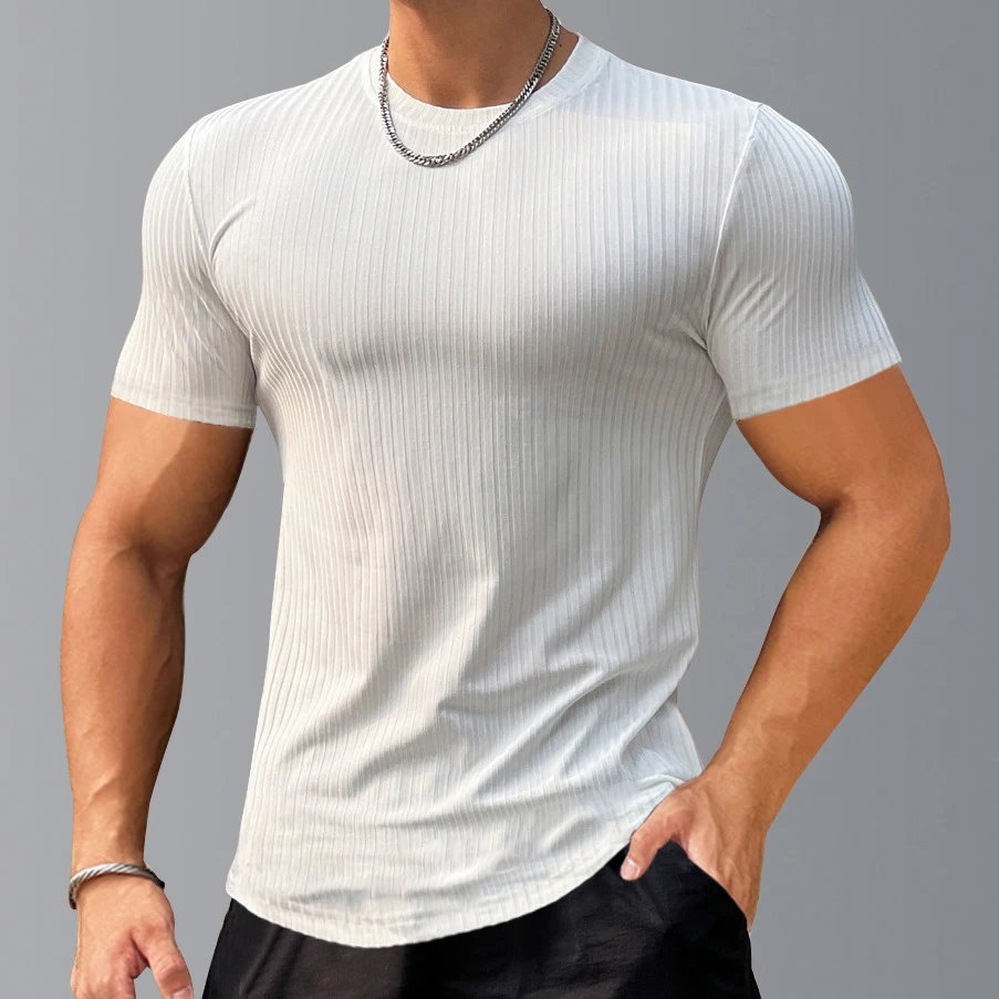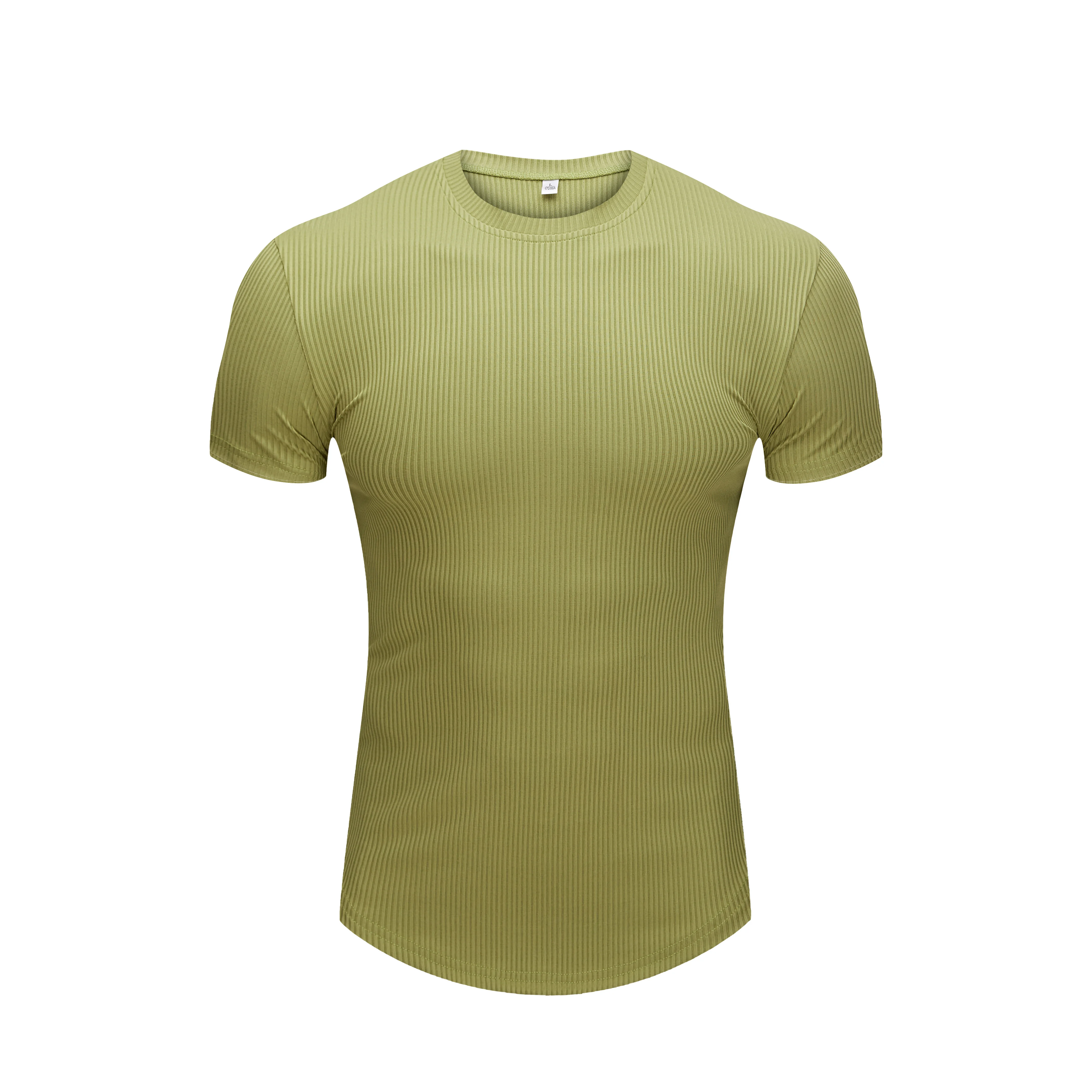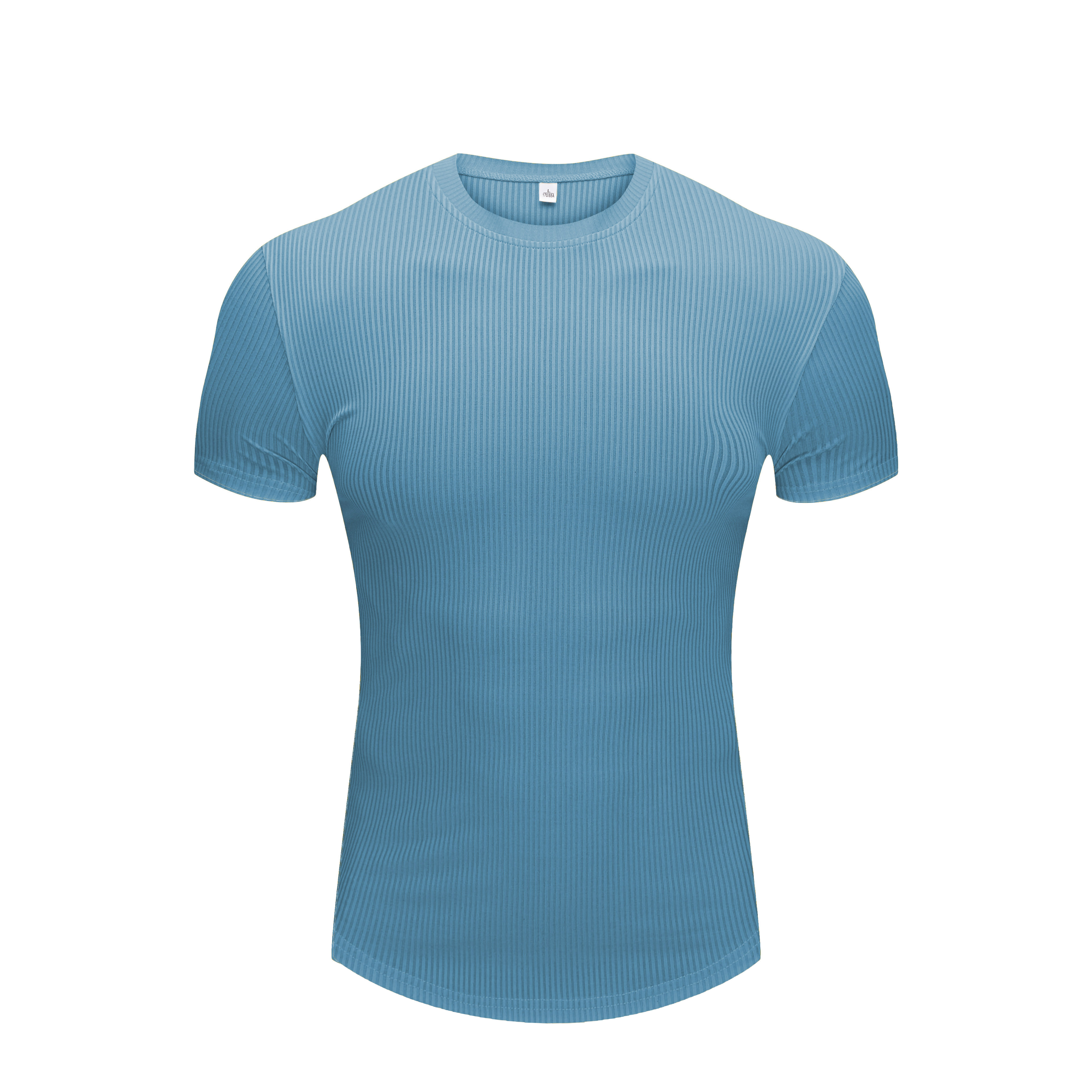 Men's Muscle Shirts Short Sleeve Casual Slim Fit Workout Tshirts Striped Curved Hem Light Weight Elastic